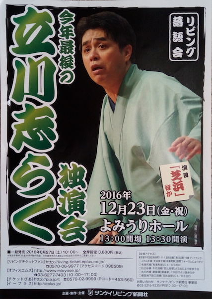 年の瀬の風物詩になった「芝浜」。今時はベートーベンの第九のように何処かの会場で語られている。その中でも志らくの「芝浜」は最上のものであろう。