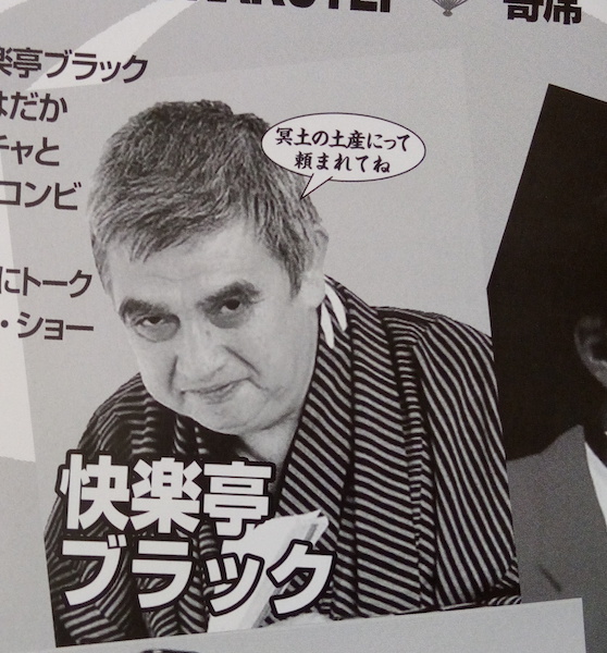 「一心太助ゆすり場の巻」と「淀五郎」は正統的な古典落語を、「女子プロレス版湯屋番」と「放送禁止百川」は崩した古典落語を演じた。ブラック師匠の本来は後者である。 差別用語、フォーレター、皇室からかいネタを連発するブラック師匠は生き生きしている。これほど連発されるとわれわれがいつも使っている言葉がいかに管理されたものであるかを実感する。