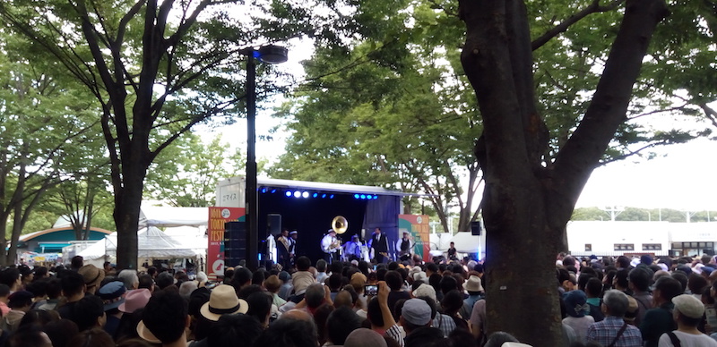 コンサートが終わって外に出たら公園のケヤキ並木ではすごい人だかり。デキシーランドジャズをやっている真っ最中であった。