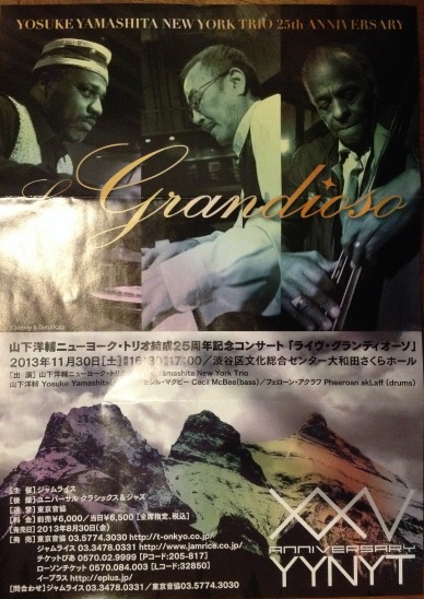20年ぶりくらいにこのトリオを生で聴いた。荒さ、硬さがとれて3人のコンビネーションが滑らかになっているのを感じた。お互いを見なくても分かり合っているという安心感を演奏から感じた。 この3人は現代のメインストリームのフォービートジャズを作り上げていると思った。 メンバーの中ではドラムスのフェローン・アクラフが印象に残った。ソロをとっても滑らかなリズムの流れが最後までくずれない。 アクラフの自在なドラムスの上で山下のピアノが自由に踊っているようだった。