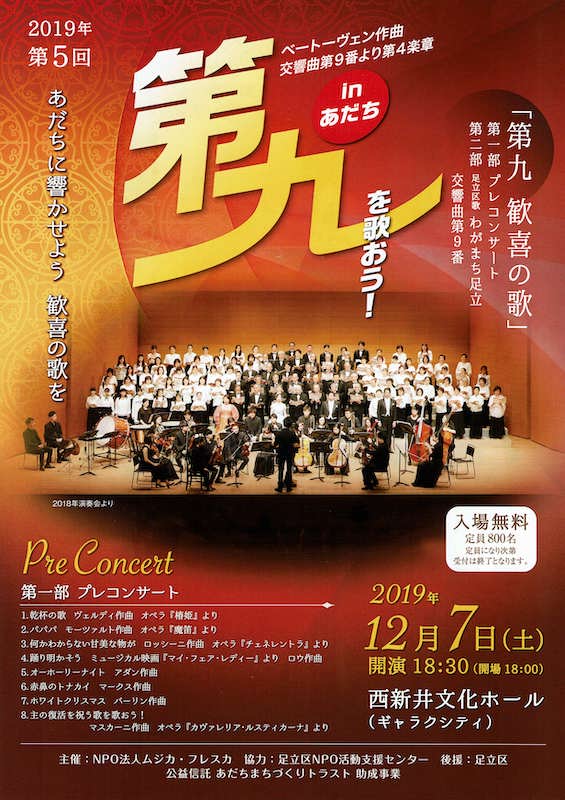 第5回目の足立区民による「第九 歓喜の歌」のコンサートである。