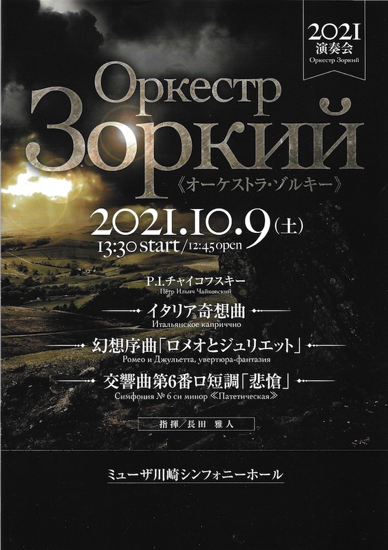オーケストラ・ゾルキーはチャイコフスキーの「マンフレッド交響曲」を演奏するためだけに企画された楽団である。2020年1月に公演を成し遂げ、解散する予定であった。ところが、内外の情勢が変化し、「チャイコフスキーの音楽の中でも最も深い絶望に彩られたマンフレッド交響曲を表現すべく、私たちはこの真っ黒な音楽に向き合い。そしてやり切った、はずだった。し かし、その後の未曽有の日々を過ごし、今なお不安の時代を生きる今の私たちは、2020年1月の会よりさらに深い負の感情を表現できるようになったのではないか?」と考え、「マンフレッド交響曲と並び、チャイコフスキーの交響曲の中で最も負の感情に溢れた彼の遺作、交響曲第6番「悲愴」の慟哭の響きを借りて、私たちは本日、この現代の日々に渦巻く不安や苦悩を、絶望の音色で代弁しようと思います」という思いから、本日の演奏会が開催されることになった。