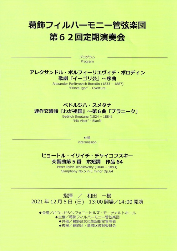 スメタナの「わが祖国」もまたこれしか知らない。有名なのは第2曲目の「モルダウ」で、これは聴けば誰でも知っているが、本日演奏された「ブラニーク」は第6曲目であり、初めて聴いた。勇壮なテーマで威勢の良い曲である。