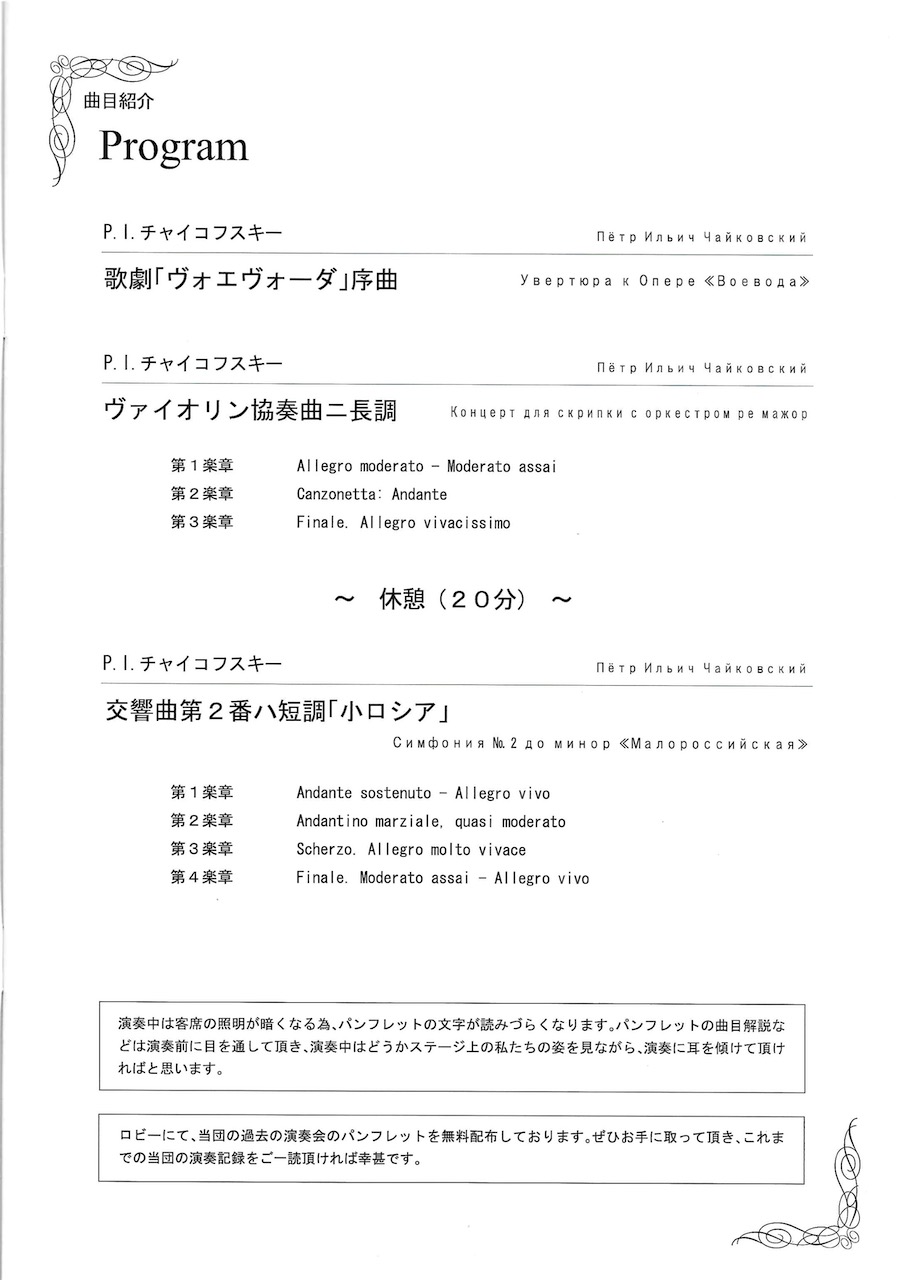 休憩の後はチャイコフスキーの交響曲第2番 ホ短調「小ロシア」。