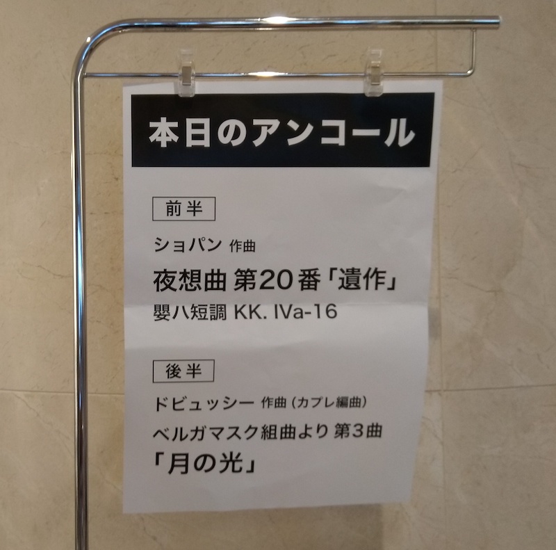 コンサートの前半でアンコールが出ることはあまりないことだが、ピアニストの川田健太郎氏はショパンの夜想曲を弾いてくれた。