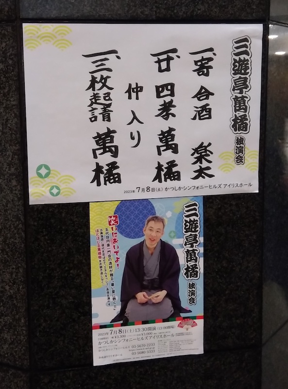 普通、大家さんが二十四孝の話を始めると、説教くさくなるのだが、萬橘では話をすればするほどハチャメチャになっていく。家に帰って母親に孝行しようとすればするほどハチャメチャ度は増していく。萬橘真骨頂になっていく。