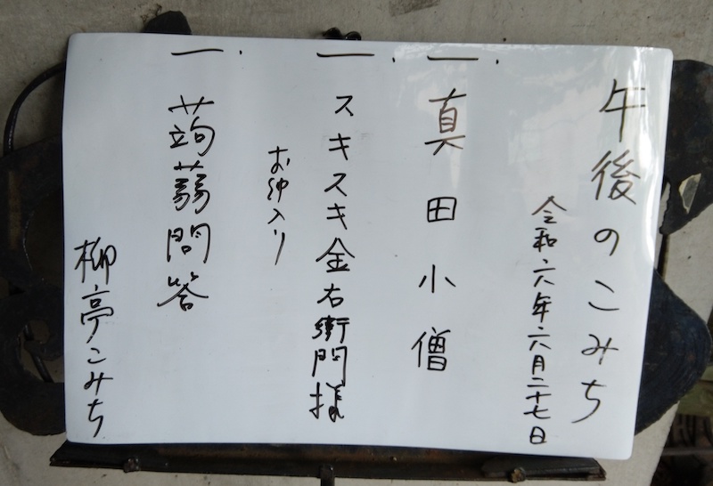 今日の観客数は30名弱。こみち師匠は「今日も満席ですねー」と喜んでいた。いつも明るい師匠である。