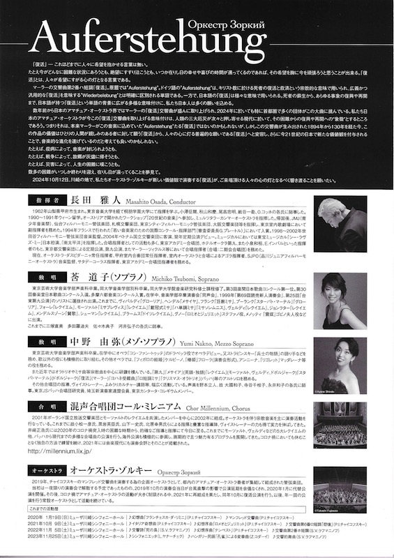 90分、全5楽章の大曲である。今日のコンサートは休憩なし、マーラーの「復活」のみの演奏である。