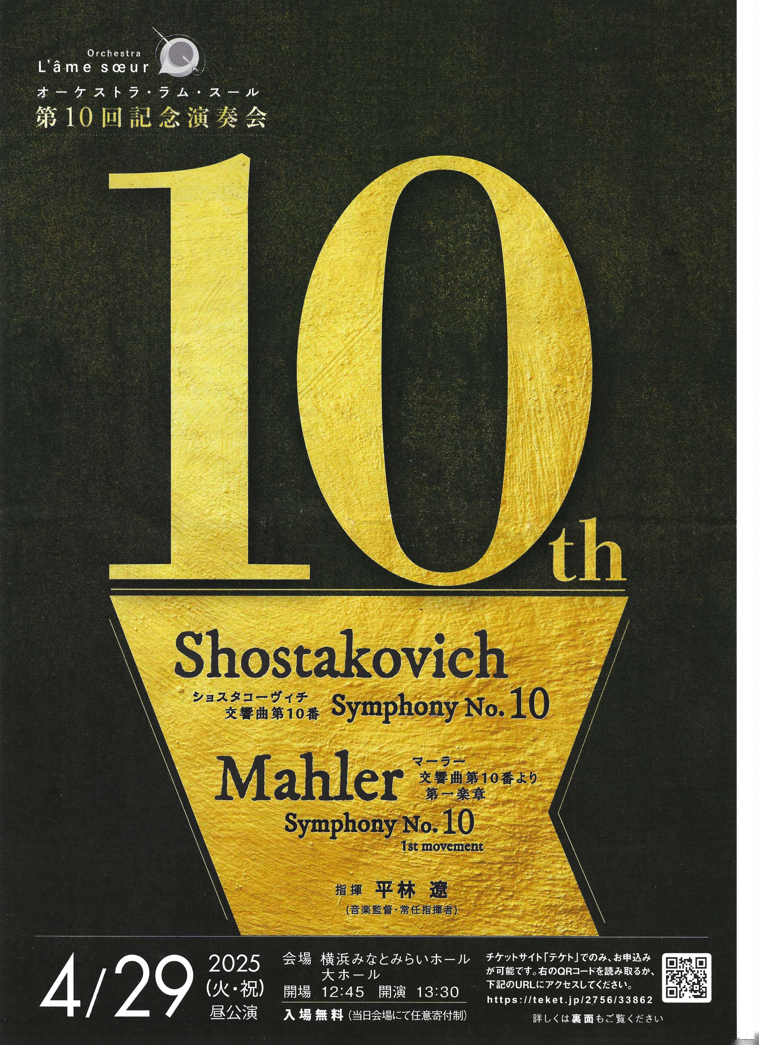 オーケストラ・ラム・スールの第10回記念演奏会ということで10番にこだわったプログラムである。