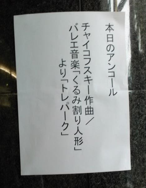 4番は管楽器による華やかな曲想から始まった。きらびやかな金管楽器がここぞとばかりに吠える。ここで「?」と思った。ちょっとずれている。しようがないのかな。管楽器奏者が一番緊張するところだ。観客も緊張する。完璧はない。 第2楽章の比較的静かな曲の途中で観客の声がする。何やらもめているようだ。楽団員の集中も一瞬途切れたようだ。何とか乗り切ってほしい。