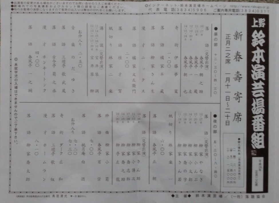 土曜日の夜、上野の鈴本演芸場へ行った。