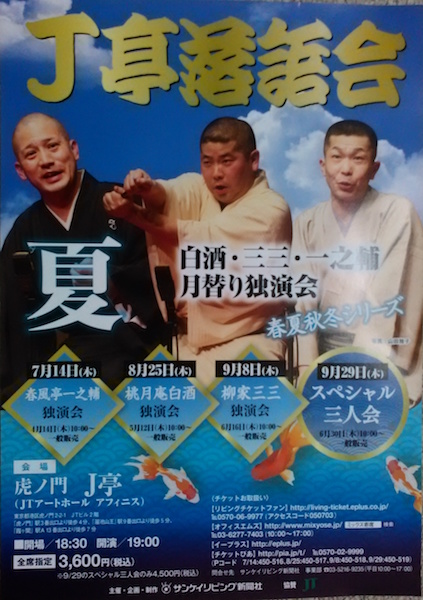 二人の会話がエスカレートしてとんでもないところへ行ってしまう、という噺3題になったが一之輔はそういう噺が得意なのかもしれない。期待できる若手というより実力派の中堅といった趣の落語家であった。