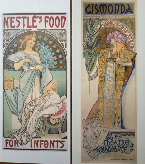 膨大な量のミュシャの作品が展示されていました。リトグラフによるポスターが半分、油絵が半分、その他素描などです。