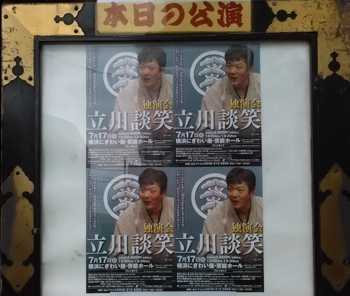 談笑の生まれたところは江東区、近所の人はすべて職人でホワイトカラーは一人もいなかったという。お父さんも職人でまだ健在という。「今日は母親が来ていまして…。どうだ、恥ずかしいだろ?」と前から3列目の夫人に話しかけていた。親孝行な人だ。昨年芝の正伝寺でやった時は奥さんと子供の手を引いて楽屋入りしていた。家庭的な人だ。この人が演る「子別れ」では子供の頭をげんのうで叩いたりしない。オチは子供の「…」というまことに微笑ましいセリフで終わる。