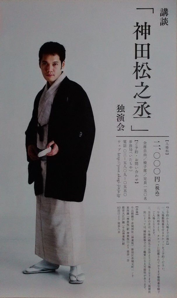 トリは神田松之丞。この人は二つ目なのにいつもトリだ。みんなに認められているのだろう。今日の話は「寛政力士伝より・橋場の長吉」。松之丞という人はどんな話でも汗を撒き散らしながら熱演する。地味な話だが思わず引き込まれてしまった。