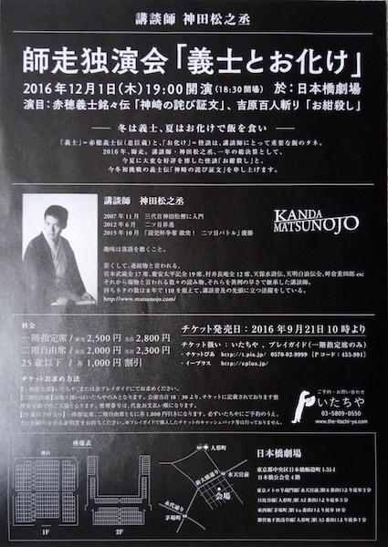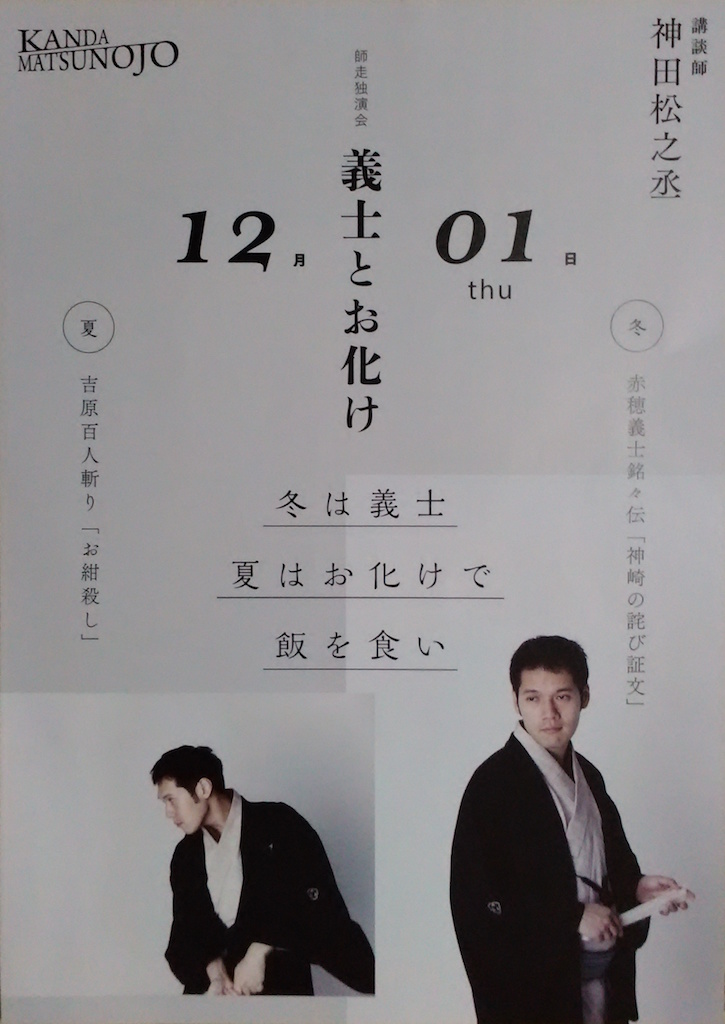 ここでもまた美しい雪のシーンが出てくる。 今日のテーマ「冬は義士、夏はお化けで飯を食い」というのは講釈師のことだが、この二つのテーマが日本人のDNAに深く結びついているのを感じた。