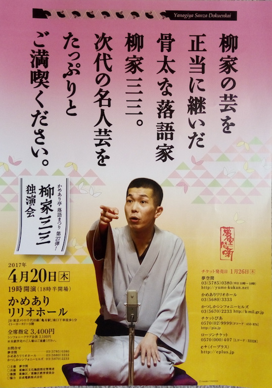 三三は八五郎と大家さんの掛け合いから始まった。落語に最も多いパターンなので当てるのが難しい。八五郎が質屋の六兵衛に一文を投げつけて、それが元で大岡越前守の御前に引き出されたところで気がついた。「五貫裁き」か。 初めから大きな噺を持ってきたな三三は…。すったもんだの挙句寝不足の六兵衛が大家さんに胸のすくような小言をいわれる。それを機に六兵衛は慈善事業に目覚め、というのは嘘くさいがそこは次代の名人三三が話すと真実味をおびてくる。