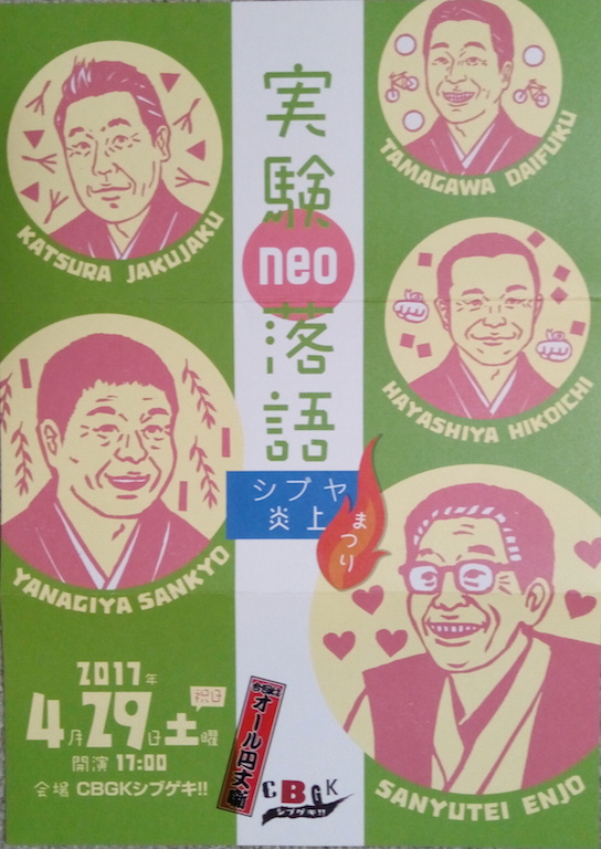 全部円丈作の噺ではあったが語り手それぞれの持ちネタのように聞こえた。古典落語も初めは新作だったという使い古された言葉が実感できた会であった。