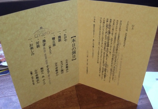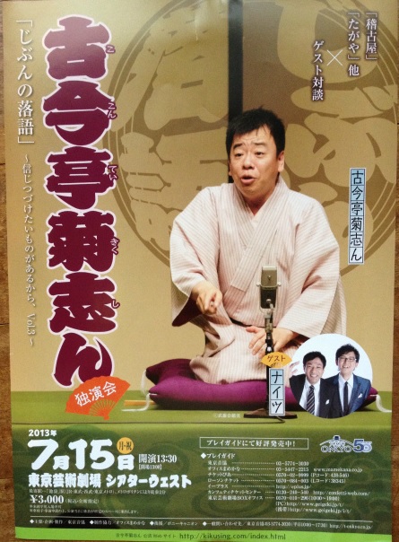 シアターウエストというのは300名弱の収容で落語を聴くのに最も適した大きさだと思った。菊志んもこれ以上大きいところでは演るつもりはないらしい。確かに落語は2,000人収容の大ホールで聴くものではないと思う。