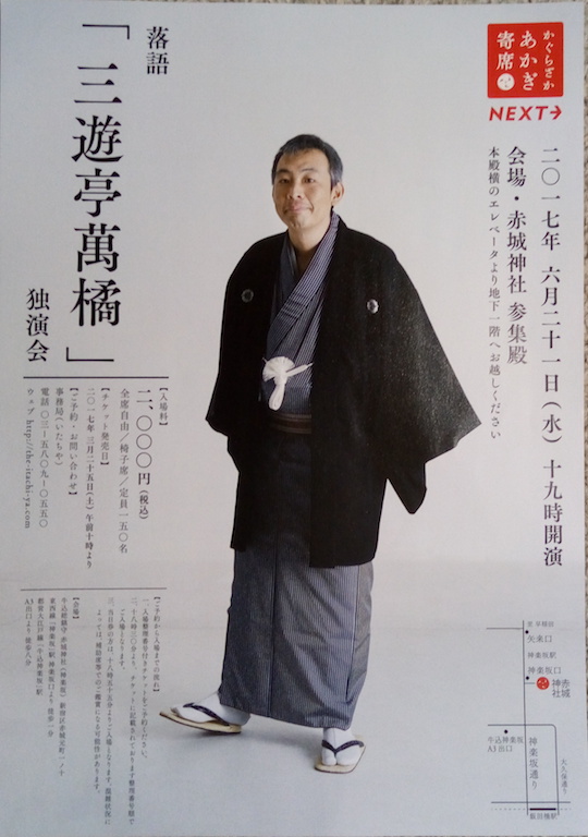 今日の舞台は地下のホールで催される「三遊亭萬橘独演会」である。