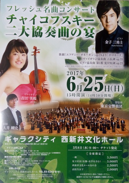 今日は曲目全てチャイコフスキーという嬉しいコンサート。「エフゲニー・オネーギン」の「ポロネーズ」は序曲にふさわしい華々しい音楽である。指揮者もきびきびして好印象だ。