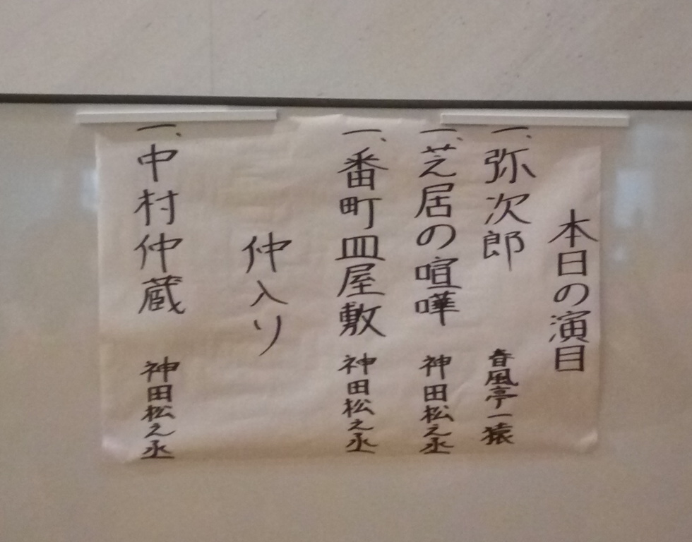 開口一番は景気付けのためか「芝居の喧嘩」。何度聴いても面白い。喧嘩が盛り上がったところで「ちょうど時間となりました」となるのもお約束である。
