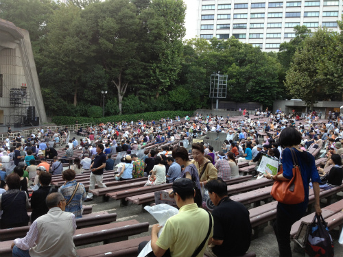 天気予報では雨だったが空は快晴、蝉時雨の音がほどの良いバックグラウンドミュージックになっている。時々涼しい風が吹き、夏の野外音楽堂らしい心地良さだ。