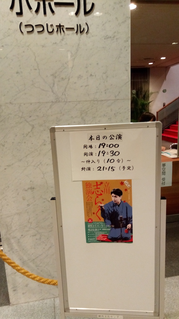 今日の演者立川志らくは西武池袋線練馬の準急で一つ先の石神井公園に住んでいる。師匠談志の元自宅を買い取ったものである。ちなみに談志は普段は新宿のマンションで生活していたようだが。