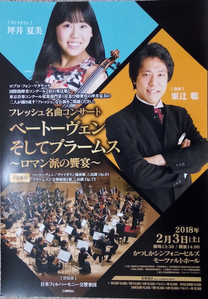 ベートーヴェンのヴァイオリン協奏曲は坪井夏美のヴァイオリン・ソロで始まった。初めは固かったヴァイオリンの音が楽章が進むにつれ躍動的で大胆になって行くのが感じられた。