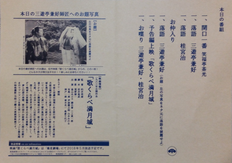 映画の予告編とトークはCS放送でやる昔の映画シリーズの宣伝であった。