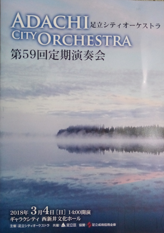ほぼ一年ぶりの足立シティオーケストラである。スッペ「詩人と農夫」は初めて聞く曲だが耳に馴染みやすく聴きやすい。