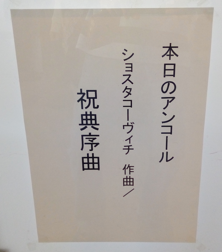 アンコールはショスタコーヴィチの「祝典序曲」。景気のいい曲である。