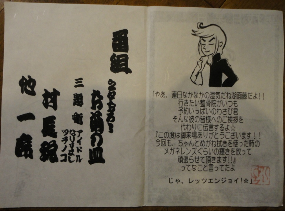 今回は生臭い選挙の噺、村長選挙だ。そこに青春時代の理想を追い求める若者たちをからませ、思い込みと強引なこじ付けで泣かせる話にしてしまう。 わさびの独壇場だ。 前から2列目の席、話しているわさびの正面で涙をこらえるのが精一杯だった。