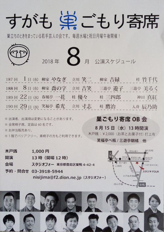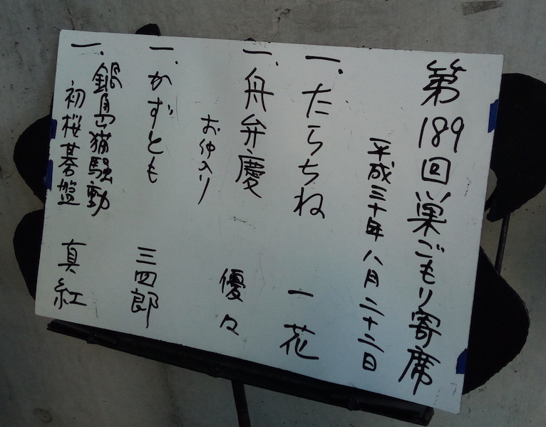 トリは神田真紅の講談で「鍋島猫騒動より"初桜碁盤"」。長い因縁話の発端である。次はもっと面白いですよ、と言われるとぜひとも聴きたくなってしまう。講談は連続ものが面白い。