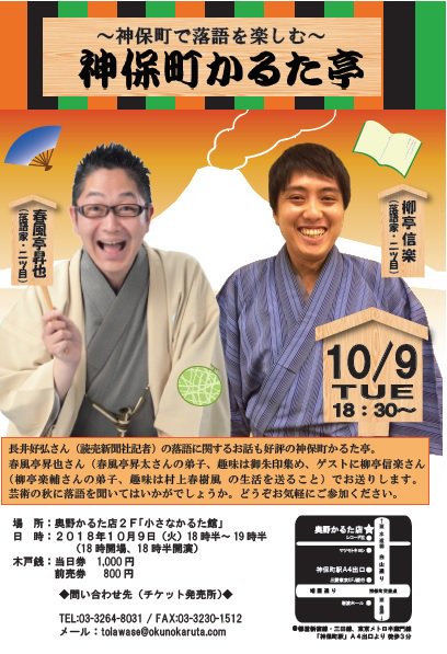 かるた亭は毎回長井先生の落語に関する興味深い話と二つ目の落語家と昇也の噺がひとつずつというちょうどよい寸法の会である。長続きしてほしい。