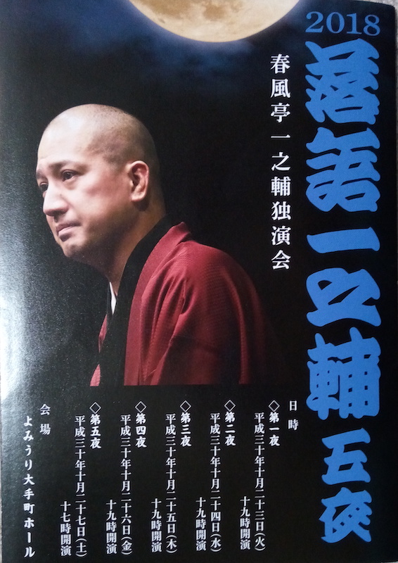 全五夜に渡った一之輔独演会の千秋楽である。今回のトリの演目はすべてネタ下ろしということだから大変だったろう。今日のトリの演目は「中村仲蔵」である。