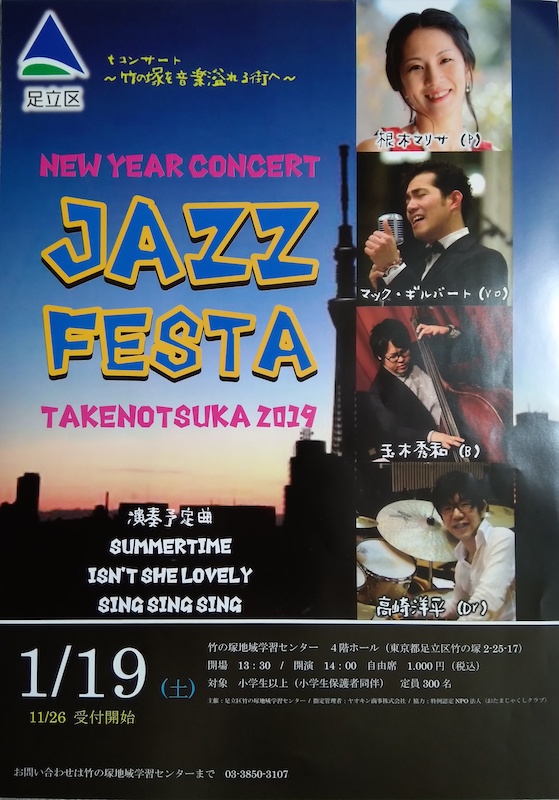 後半始めは根木マリサ作曲の「When You Cross The River」。彼女がオランダに留学して初めてベテランのミュージシャンたちと共演した時、思い切って気合いを入れて「えい」っと飛び込んで行った時の気持ちを曲にするとこうなるらしい。すごくスイングするジャズに仕上がっていた。