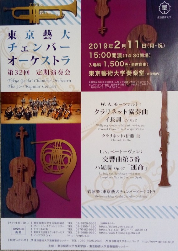 モーツァルトのクラリネット協奏曲。クラリネット演奏は東京芸大の准教授伊藤圭氏。N饗の主席クラリネット奏者でもある。