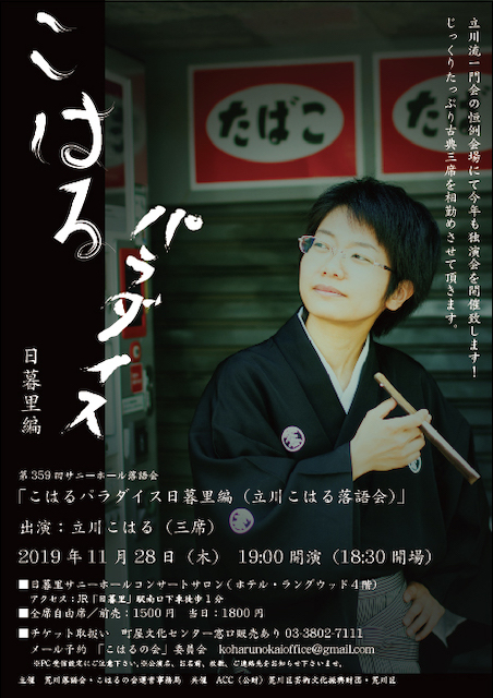 トリは「小言幸兵衛」。本来長屋の借り手は3人出てくるのだが、こはるはふたり目でオチに持っていった。加速度がついたところでスピードを落とすことなく噺を終えたかったのだろう。