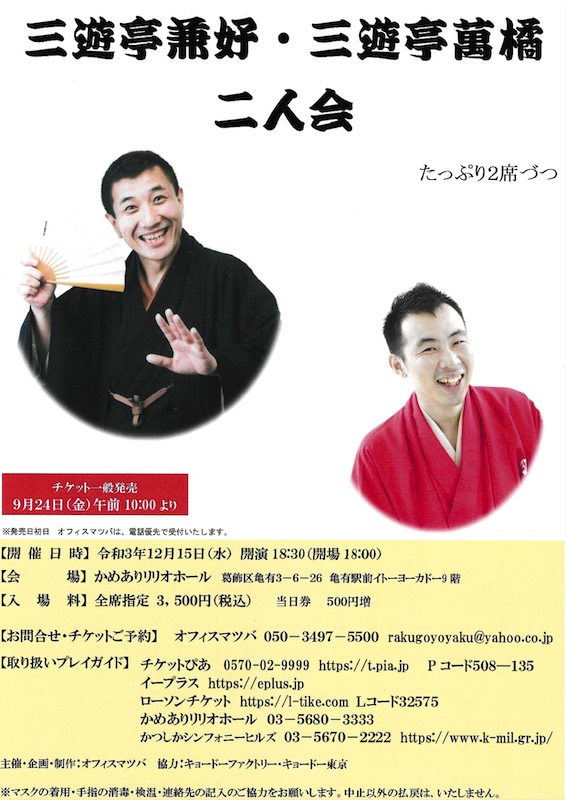 今年落語を生で聴くのは2回目である。数少ない落語鑑賞の機会をリリオホールでもてたのは良かった。しかも演者は三遊亭兼好と三遊亭萬橘という実力者たちである。