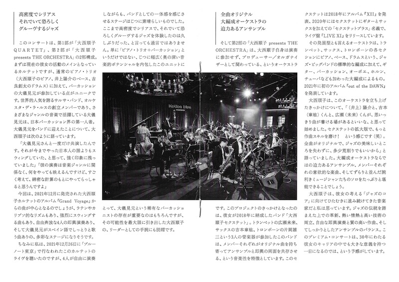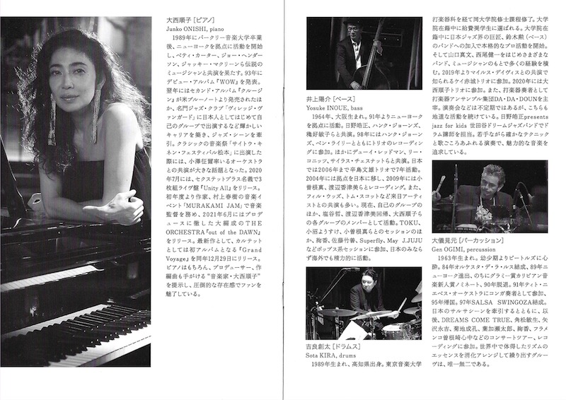 第1部は彼女の最新アルバム「Grand Voyage」の曲を中心に演奏された。常にジャズ界の先頭を走っている大西の作品だ。