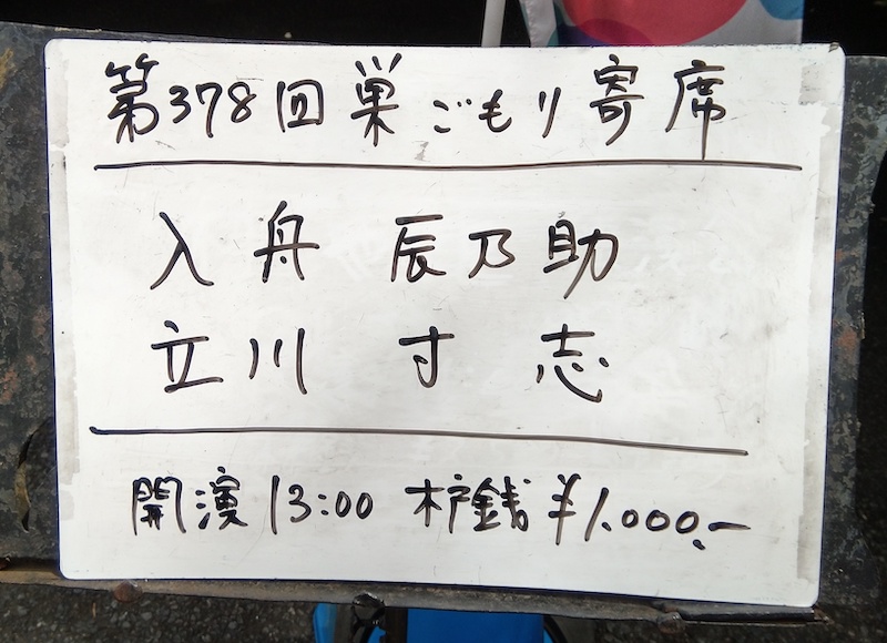出演予定の笑福亭希光が休演のため、寸志と辰乃助のふたり会になった。