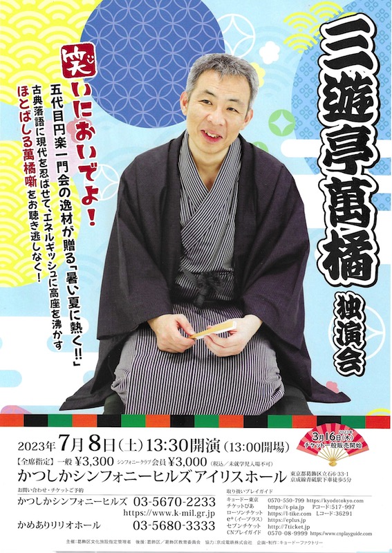普通、大家さんが二十四孝の話を始めると、説教くさくなるのだが、萬橘では話をすればするほどハチャメチャになっていく。家に帰って母親に孝行しようとすればするほどハチャメチャ度は増していく。萬橘真骨頂になっていく。