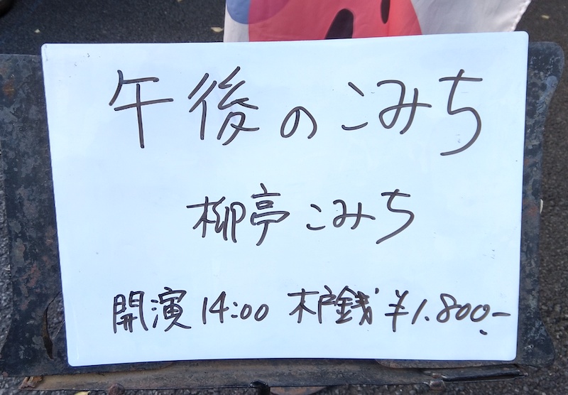 仲入りの後はトリの「宿屋の富」。何度も聴いて知っている噺ではあるが、こみち姉さんは時々はさむ小ネタがバカに可笑しい。富くじが当たったら、ああしようこうしようと言い合う庶民の姿が、こみち姉さんのスパイスの効いたフィルターを通して語られると、切なくも滑稽に我々の胸に響いてくる。