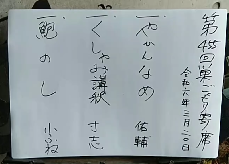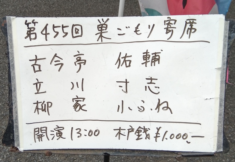 これを「フラ」というのか。「鮑のし」を淡々と喋るだけで30人ほど入った会場が揺れるほど笑いに包まれた。15分ほどの噺だったがこんなに笑ったのは久しぶりだった。