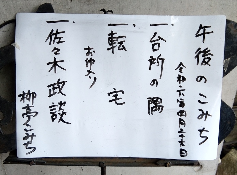 利発な子供と佐々木信濃守の丁々発止の会話が面白い。こみち師匠は子供と御奉行のそれぞれをメリハリをつけて演じ、その可笑しさを表現していた。