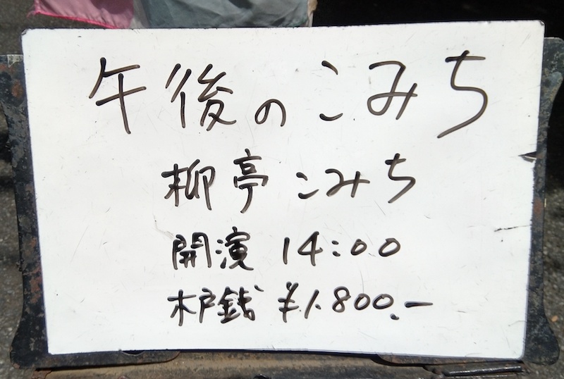 今日の観客数は30名弱。こみち師匠は「今日も満席ですねー」と喜んでいた。いつも明るい師匠である。