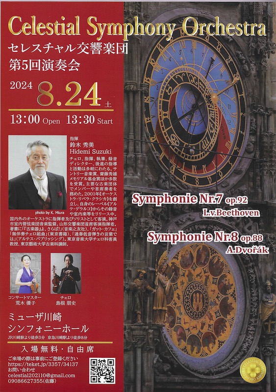 セレスチャル交響楽団は初めて聴くアマチュア楽団で、しかも5回目の演奏会ということで不安だった。ベートーヴェンの交響曲を演奏し始めた時もなんとなく不安定な演奏で、今日はダメだったかな、と思っていた。