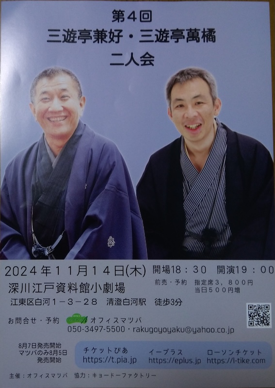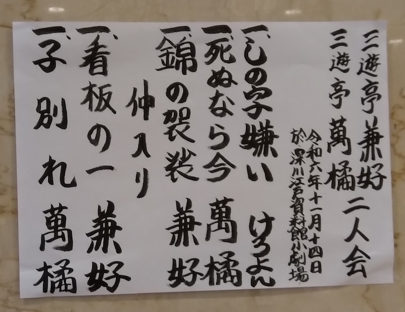 次に出たのは三遊亭萬橘師匠だ。ということは今日のトリは萬橘か。てっきり兼好かと思ったが。