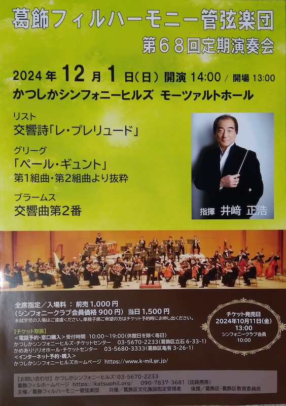 リストの交響詩「レ・プレリュード」もグリーグの「ペール・ギュント」もお馴染みの曲で聴いていて楽しかった。